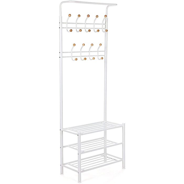 Hoppa! Songmics kapstok met schoenenrek - Creme Wit - Metaal - 68,8x35,2x187cm (BxDxH)