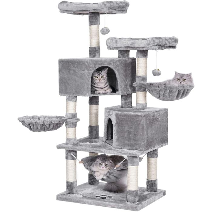 U plaatst een review over: Hoppa! Songmics Kattenboom - Multi-Level - Voerbak - Krabpaal - Sisal-bedekte Kraspalen - Grijs - 60 x 45 x 145 cm