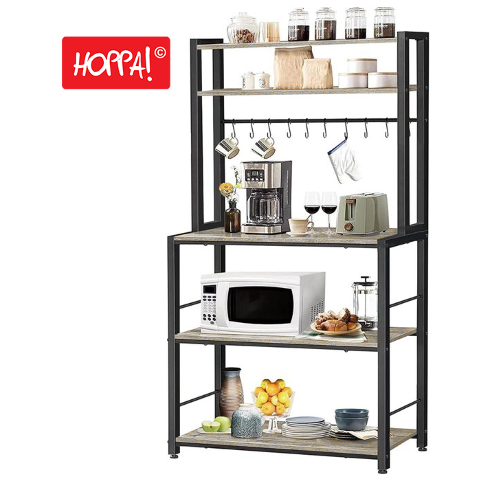 Hoppa! Songmics Keukenbakkersrek, Koffiebar, Magnetronstandaard, Greige, 5-laags 84 x 40 x 161 cm (BxDxH)