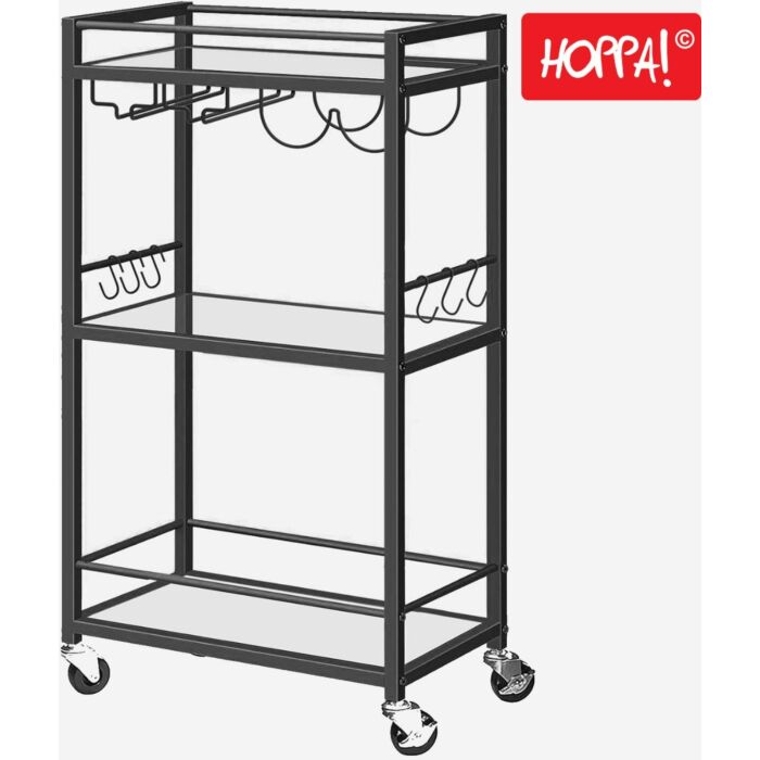 Hoppa! Songmics Serveerwagen, Barwagen, Magnetronwagen, Drankwagen, Mobiele keukenplank met wijnrek en glazen houder, Zwart