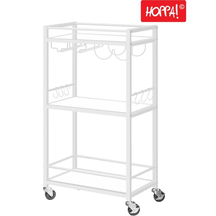 Hoppa! Songmics Serveerwagen, Barwagen, Magnetronwagen, Drankwagen, Mobiele keukenplank met wijnrek en glazen houder, Wit