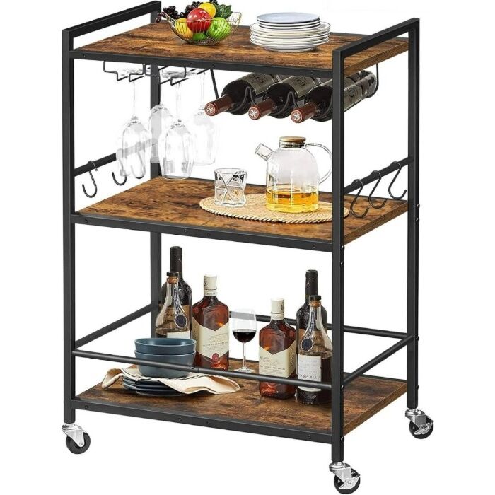 Hoppa! Songmics Serveerwagen, Barwagen, Magnetronwagen, Drankwagen - Metaal - Hout - 60x33x83 cm (BxDxH) - Bruin
