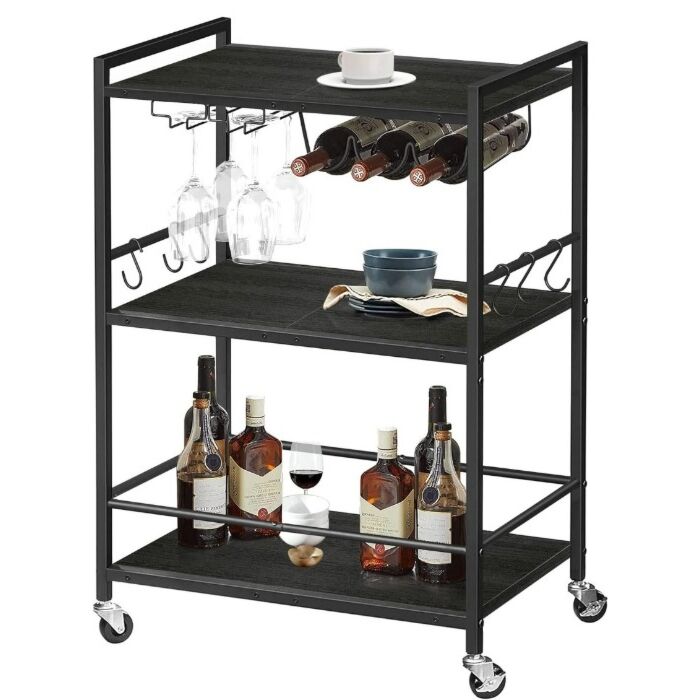 Hoppa! Songmics Serveerwagen, Barwagen, Magnetronwagen, Drankwagen - Metaal - Hout - 60x33x83 cm (BxDxH) - Zwart