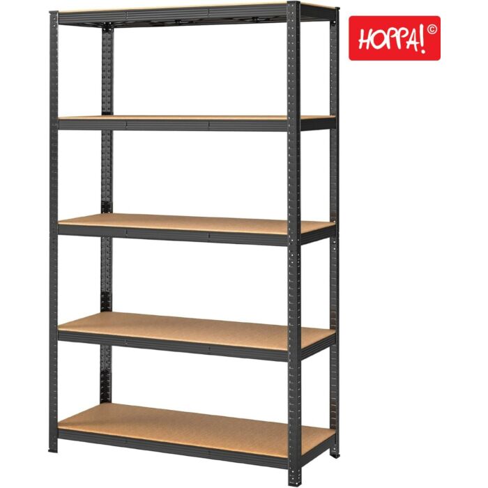 Hoppa! Songmics Magazijnstelling - Opbergrek, stellingkast, werkplaatskast, 120x60x200 cm (BxDxH), belastbaar tot 875 kg (175 kg per plank) - zwart