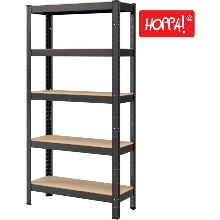 Hoppa! Songmics Magazijnstelling - Opbergrek, stellingkast, werkplaatskast, 75x30x150 cm (BxDxH), belastbaar tot 675 kg (135 kg per plank) - zwart