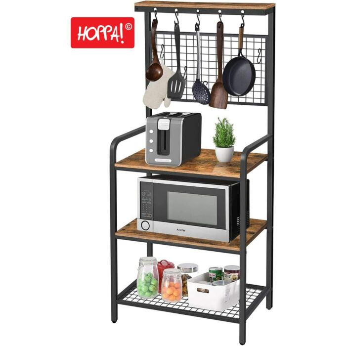 Hoppa! Songmics Bakkersrek, koffiebar, magnetronstandaard, keukenhoog opbergrek, kruidenrek, rustiek bruin, 64x40x170 cm (BxDxH)