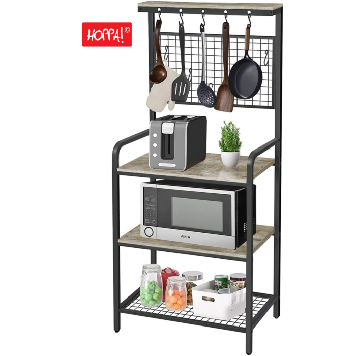 Hoppa! Songmics Bakkersrek, koffiebar, magnetronstandaard, keukenhoog opbergrek, kruidenrek, rustiek Greige, 64x40x170 cm (BxDxH)