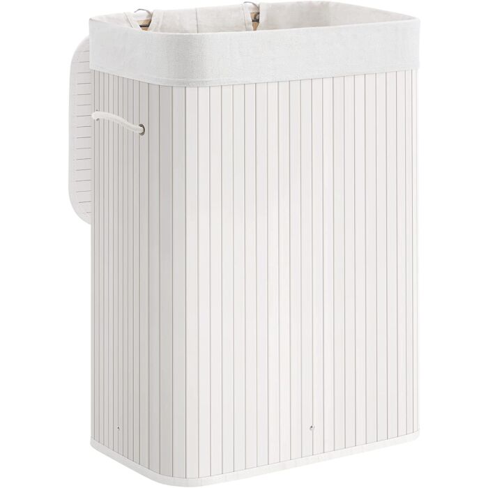 Hoppa! Songmics Bamboe wasmand, opvouwbare wasbak met deksel en uitneembare katoenen waszak, 72 L wasbox, waskist, 40 x 30 x 60 cm, wit
