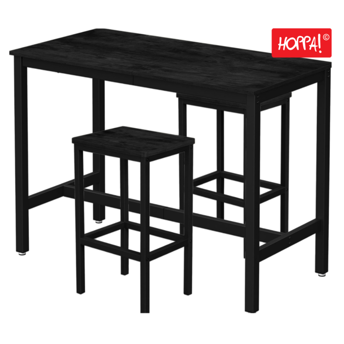 Hoppa! Songmics Bartafel- en barkrukkenset | Zwart | Bartafel 120×60×90 cm, 2 barkrukken 30×40×65 cm (L×B×H)