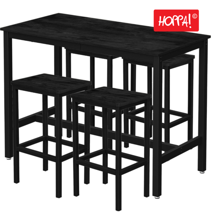 Hoppa! Songmics Bartafel- en barkrukkenset | Zwart | Bartafel 120×60×90 cm, 4 barkrukken 30×40×65 cm (L×B×H)