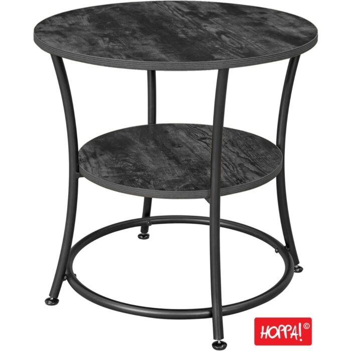 Hoppa! Songmics Bijzettafel rond, banktafel, 2 planken, woonkamer, slaapkamer, eenvoudige montage, metaal, industrieel ontwerp, vintage, Zwart