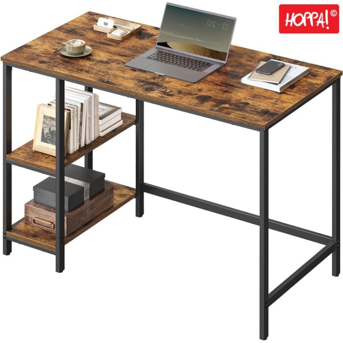 Hoppa! Songmics Bureau, computertafel, pc-tafel, bureautafel, met 2 legplanken rechts of links, 100 x 50 x 76 cm, stalen frame