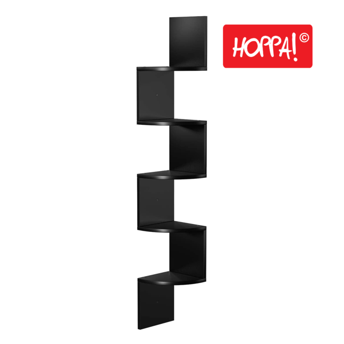 Hoppa! Songmics Zigzag Hoekkast - Wandplank - Wandkast - Zwart - Kunststof - 20x20x127,5 cm (BxDxH)