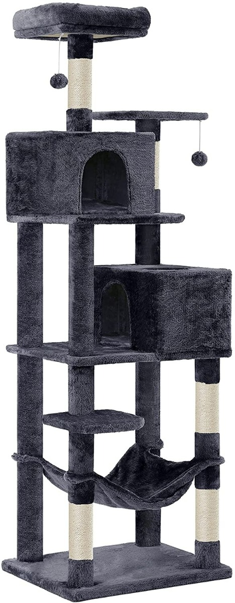 Hoppa! Songmics krabpaal, krabpaal met zacht pluche, kattenboom rookgrijs
