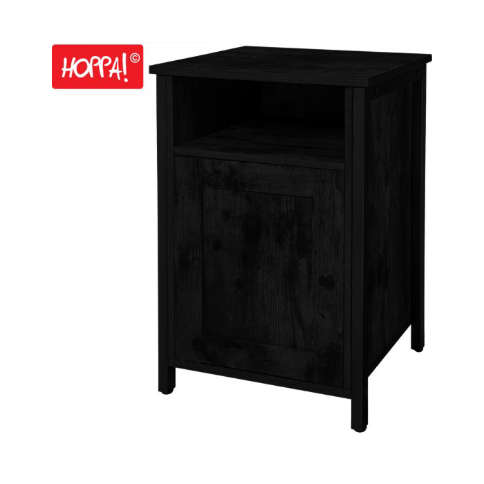 Hoppa! Songmics Nachtkastje - Open vak - Plank en Deurtje - Zwart - Houten Spaanplaat/Staal