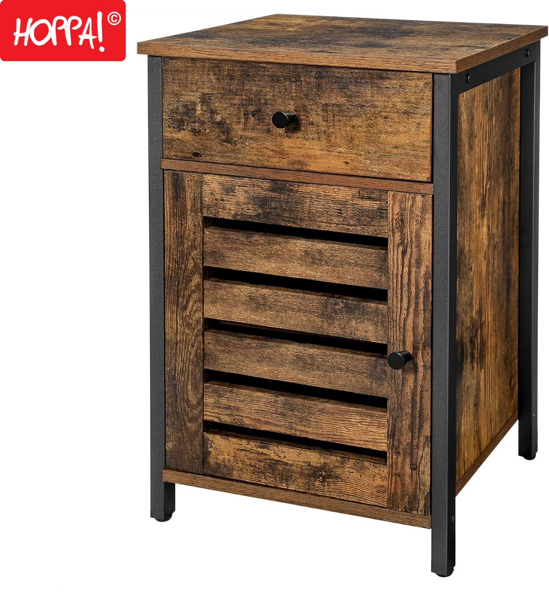 Hoppa! Songmics Nachtkastje | Bruin / Zwart met lade en deurtje | 41 x 41 x 61 cm (B x D x H)