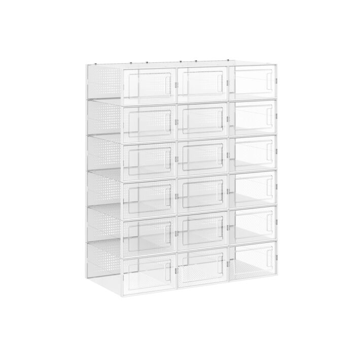 Hoppa! Songmics schoendozen, set van 18, opbergdozen voor schoenen, schoen organizer, plastic dozen, opvouwbaar en stapelbaar, voor schoenen tot maat 42, transparant wit