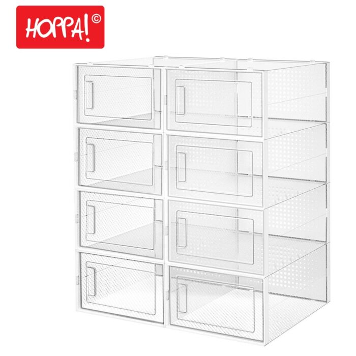 Hoppa! Songmics schoendozen, set van 8, opbergdozen voor schoenen, schoen organizer, plastic dozen, opvouwbaar en stapelbaar, voor schoenen tot maat 42, transparant wit