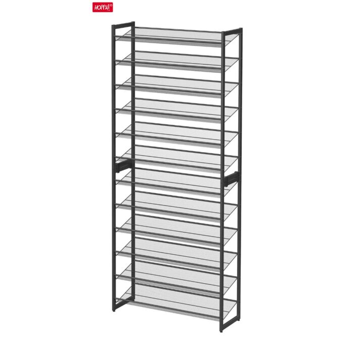 U plaatst een review over: Hoppa! Songmics schoenenrek met 12 schappen, set van 2 stapelbare 6-staps schoenenrekken, voor 48-60 paar schoenen, metaal, verstelbare rasterplanken, plat of schuin te monteren, zwart