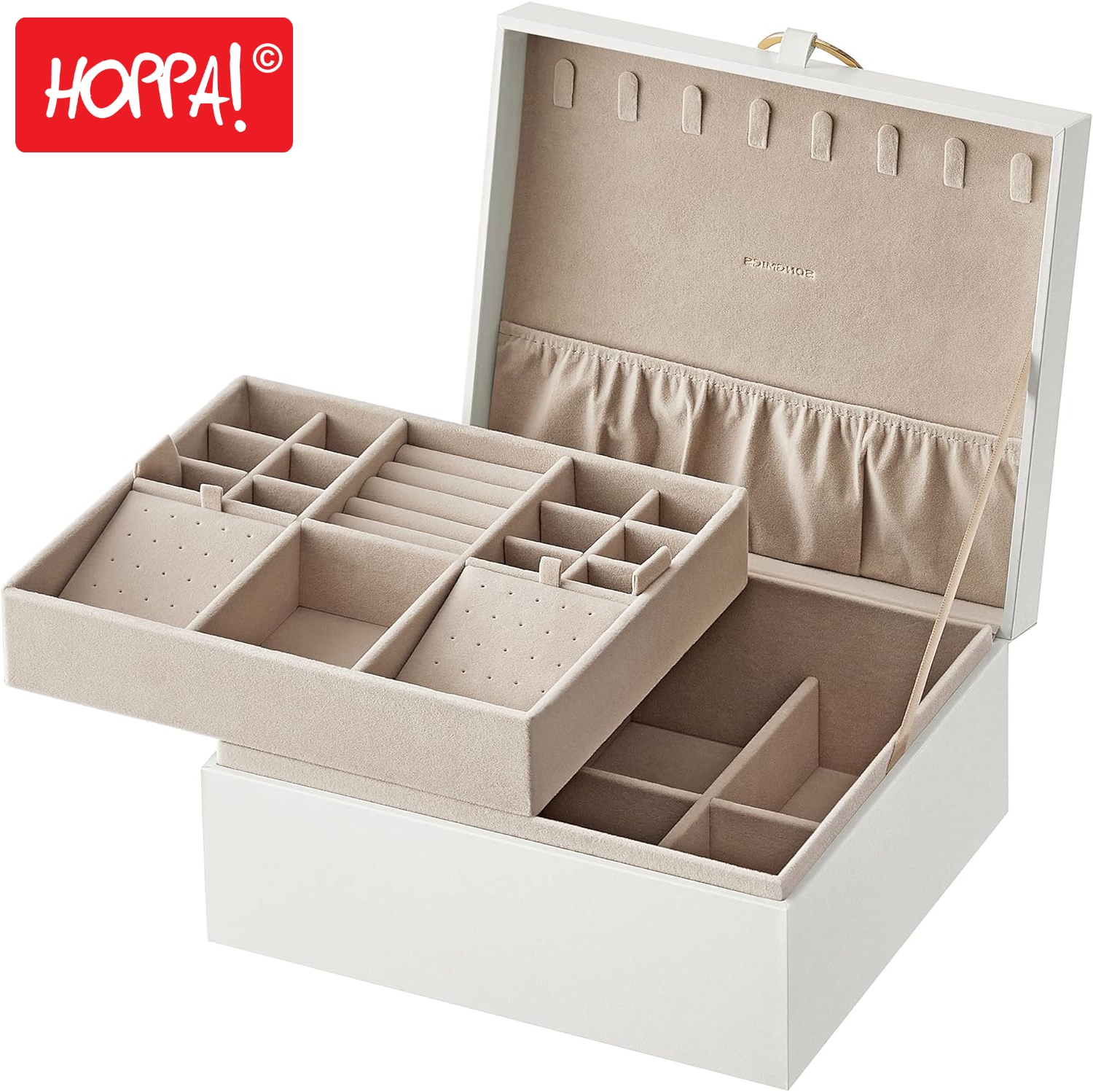 U plaatst een review over: Hoppa! Songmics Sieradendoos, 2-laags sieradendoosje, sieradenorganizer met handvat, afneembaar sieradenrek, zwevend effect, 20,5 x 24 x 11 cm, cadeau-idee wit