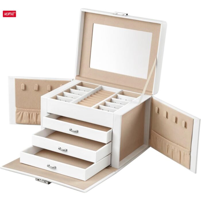 Hoppa! Songmics Sieradendoos, Juwelenkistje, juwelenkistje, juwelenkistje, met 4 niveaus, fluwelen voering, wit