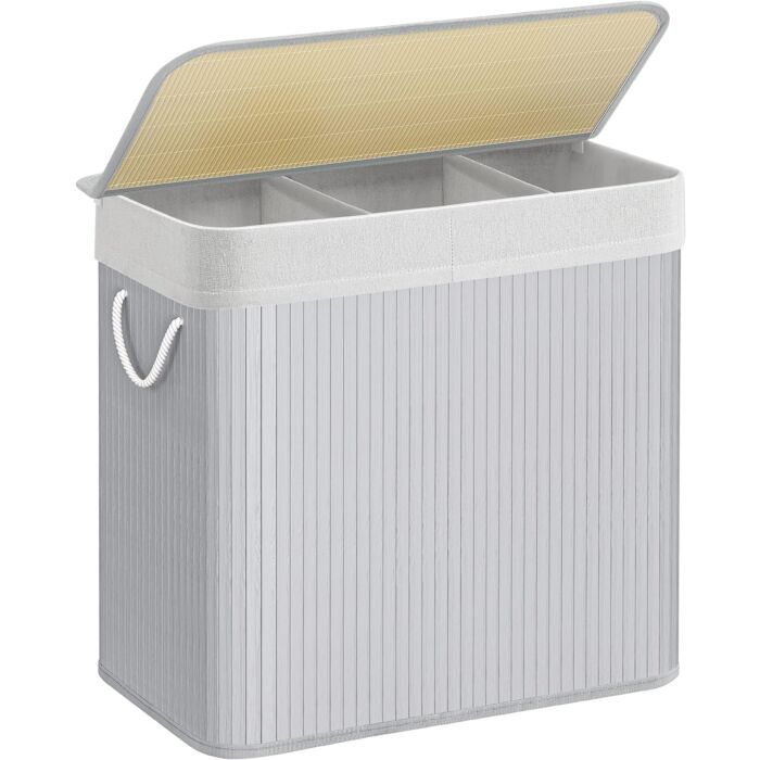 U plaatst een review over: Wasmand, 150L, wasbox met deksel, van bamboe, met handvatten, 3 compartimenten, opvouwbaar, katoen, Grijs