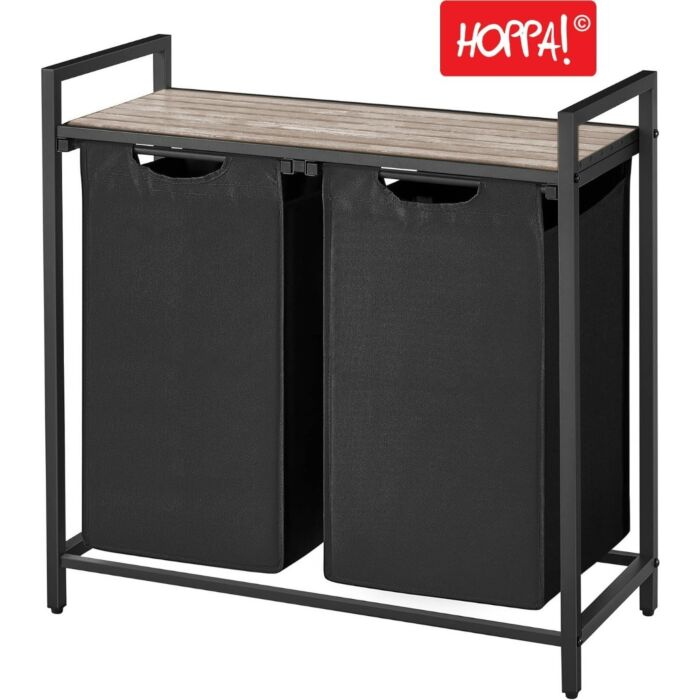 Hoppa! Songmics Wasmand, Wasverzamelaar, 2 Vakken, 2x Waszak 38 liter Uitschuifbaar En Uitneembaar, Vintage Grijs