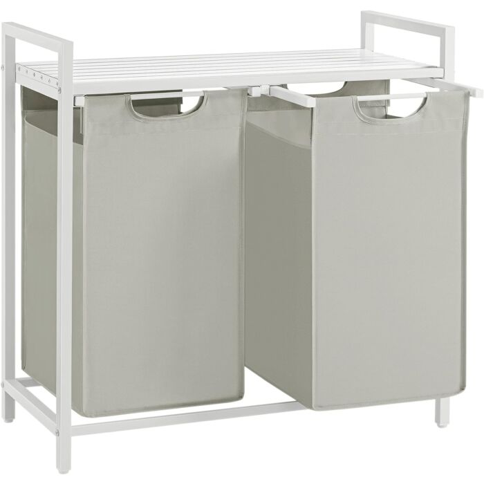 Wasmand 2 vakken, wasmand met plank, wasbox, metalen frame, 2 x 46 L, 73 x 33 x 72 cm, wit