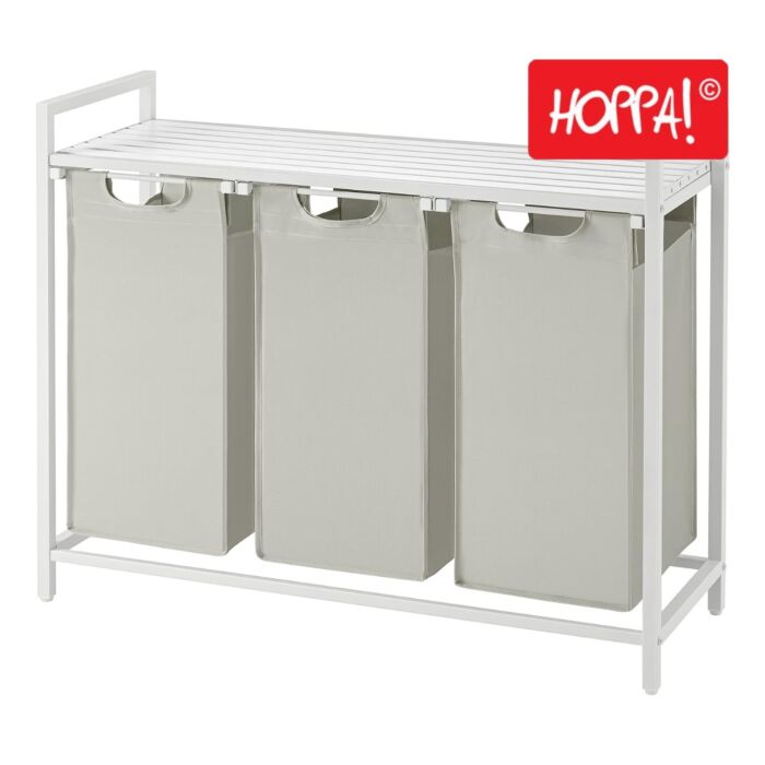 Wasmand 3 vakken, met plank, waszak uitneembaar, metalen frame, 3x38 liter, 92x33x72 cm, wit