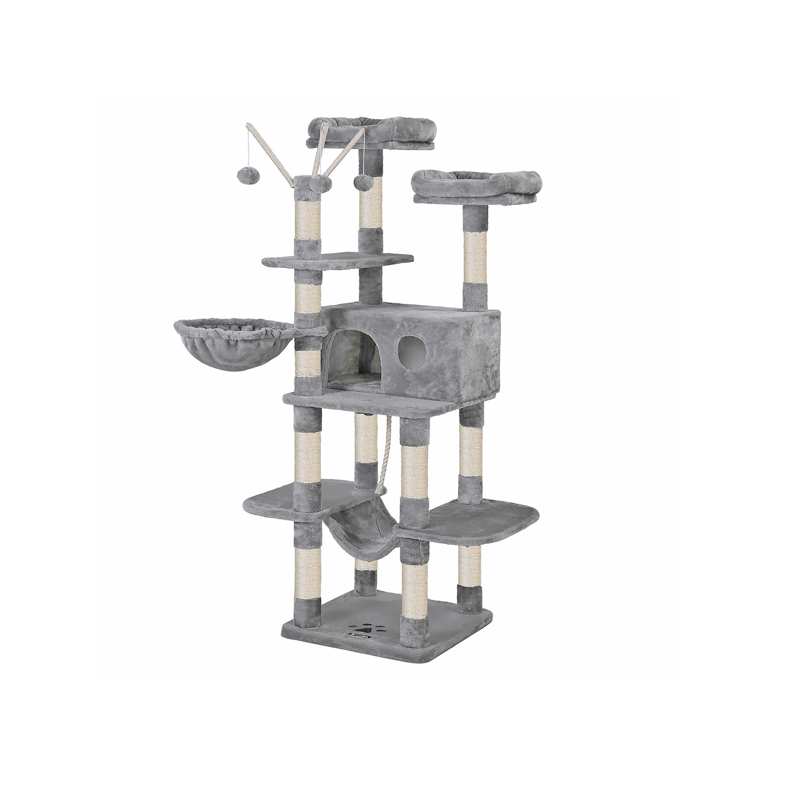 Specifications: - Colour: Light Grey - Material: Particleboard, Plush Fabric, Sisal - Product Size: 50 x 50 x 164 cm (L x W x H) - Product Weight: 18 kg Package Contents: - 1 x Cat Tree - 1 x Anti-Tip Kit - 1 x Accessory Kit - 1 x Instructions (EN, DE, FR, ES, IT)