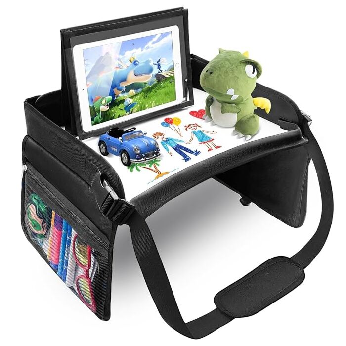 We weten allemaal dat een lange autorit geen eenvoudige opgave is voor kinderen. Ze moeten lang stilzitten en willen altijd de spelletjes en activiteiten doen die juist niet mogelijk zijn. Gelukkig biedt de Reistafel de perfecte oplossing. Dankzij het slimme ontwerp kunnen kinderen kleuren, spelen en films kijken op hun tablet met behulp van de speciale houder.