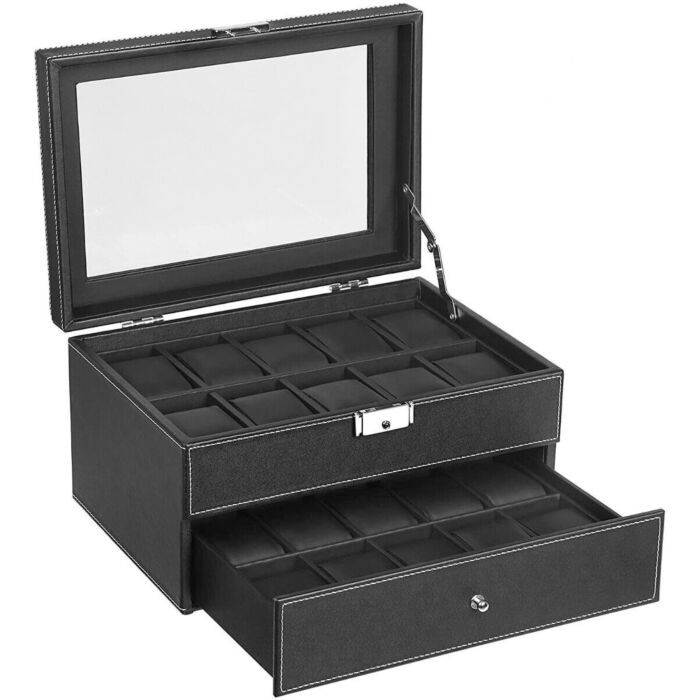 Hoppa! Songmics 2 lagen horloge opbergdoos - Zwart - Flanel