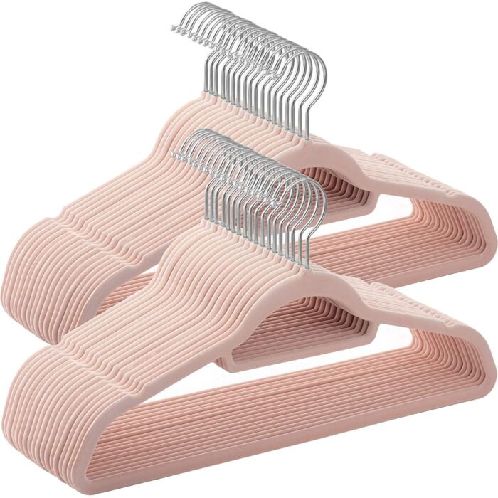 Hoppa! Songmics Anti-Slip Kledinghangers 50 Stuks - Roze - Fluweel