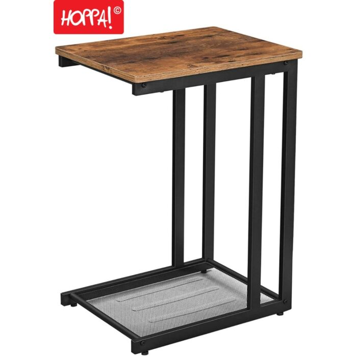 Hoppa! Bijzettafel met Roosterplank - Bruin/Zwart - Metaal - 48 x 35 x 65 cm