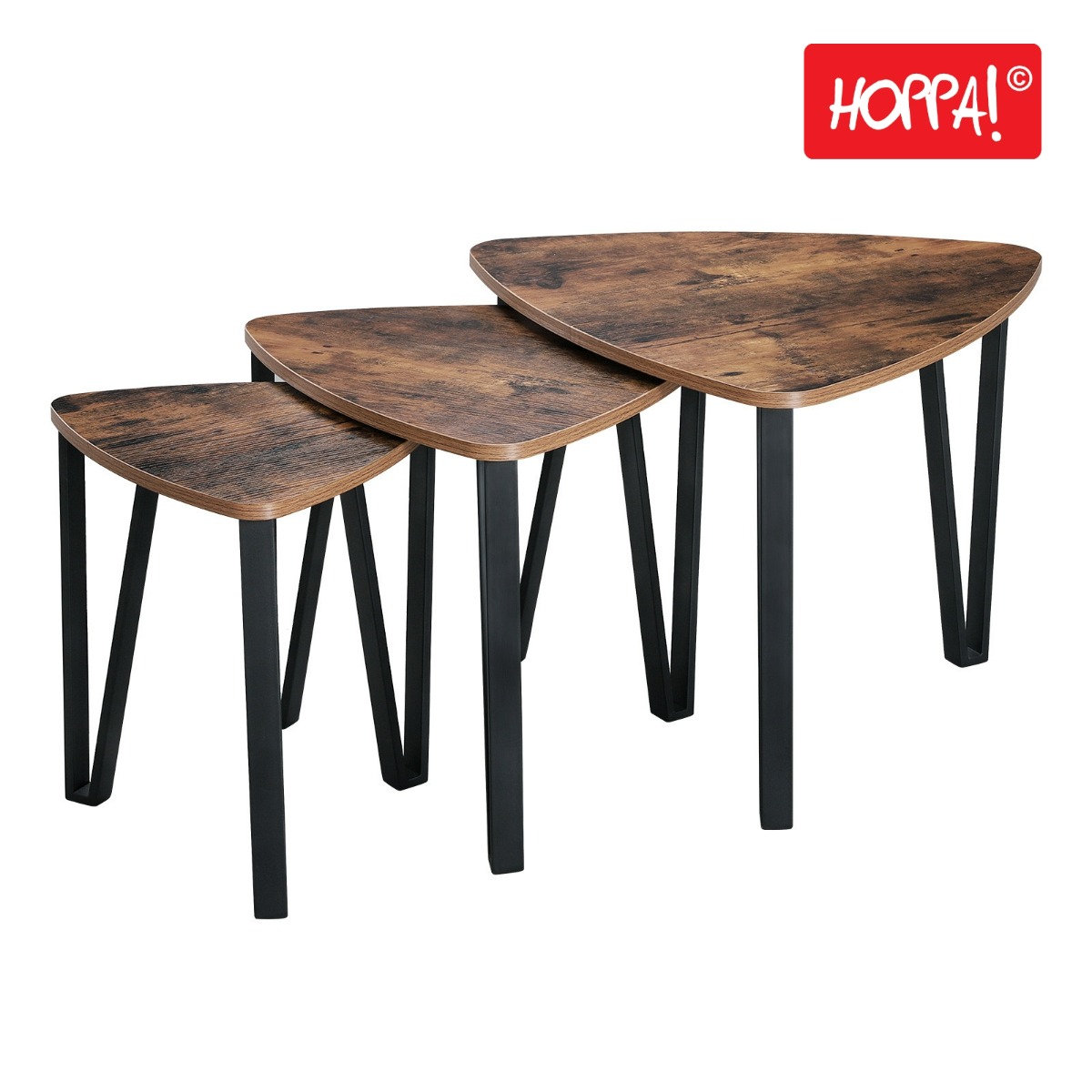 Hoppa! Songmics Bijzettafels - Set van 3 - Vintage - Bruin - Ijzer - 59 x 59 x 45 cm