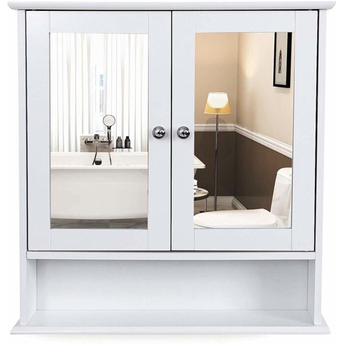 U plaatst een review over: Hoppa! Songmics Badkamerkast / Hangkast met 2 Spiegeldeuren - Wit - Hout - 56x58x13 cm (BxHxD)