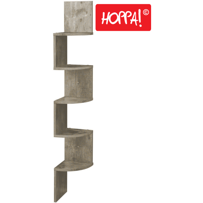 Hoppa! Songmics Zigzag Hoekkast - Wandplank - Wandkast - Greige - Kunststof - 20x20x127,5 cm (BxDxH)