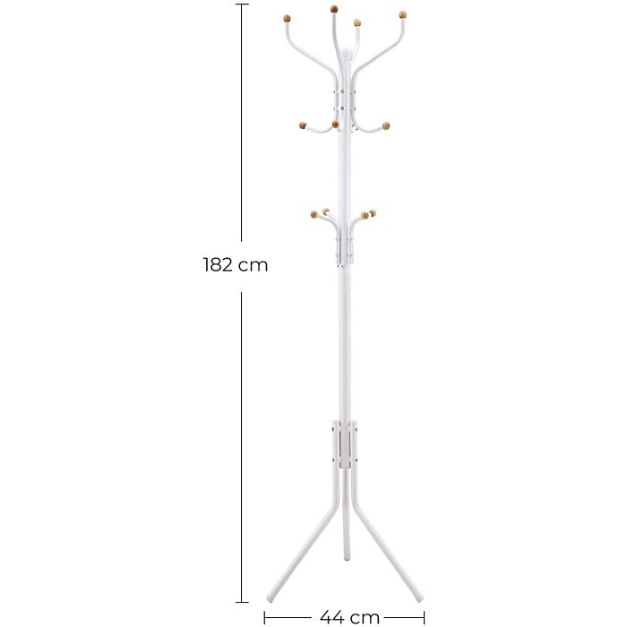 Hoppa! Songmics Staande Kapstok met 12 Haken - 182 cm hoog - Wit - ijzer