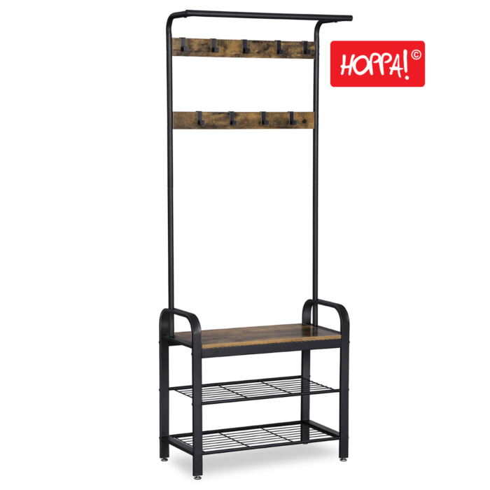 Hoppa! Songmics Kapstok | Garderoberek Staand | Schoenenrek - Bruin - Staal/Hout - 72x33,7x183cm (BxDxH)