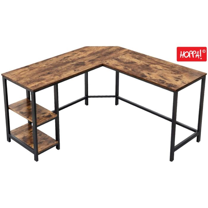 Hoppa! Songmics L-Vormig Bureau Met Planken - 138x138x75cm (BxDxH) - Zwart/Bruin - Metaal