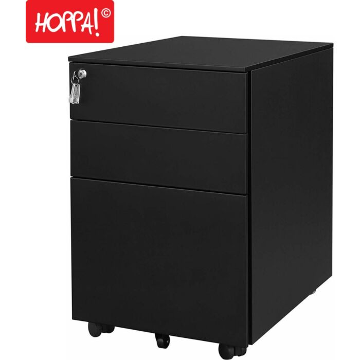 Hoppa! Songmics Ladeblok - Rolcontainer - Nachtkastje - Op Wielen - Verrijdbare archiefkast - Zwart - Staal - 39x45x55 cm (BxDxH)