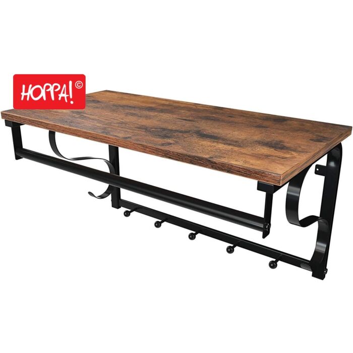 VERSATILE & DECORATIEF: De wandplank bestaat uit een zwart ijzeren frame en een MDF-plaat in vintage-stijl. Een chique kers op de taart in industrieel ontwerp voor uw entree of slaapkamer