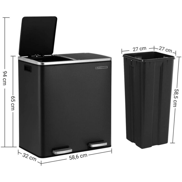 EINDE IN EEN STAP: De pedaalemmer is uitgerust met pedalen die een gemakkelijke en hygiënische opening mogelijk maken en heeft 2 binnenbakken zodat u uw afval gescheiden door materiaal kunt weggooien - waardoor afvalverwijdering en -sortering een fluitje van een cent zijn!