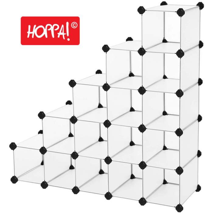 Veel opbergruimte: afmetingen van het rek: 22 x 22 x 35 cm (B x H x D); inhoud van elk rek: 17 L; totale inhoud (16 x rek): 272 L. Biedt praktische opbergruimte voor schoenen, kleding of speelgoed,