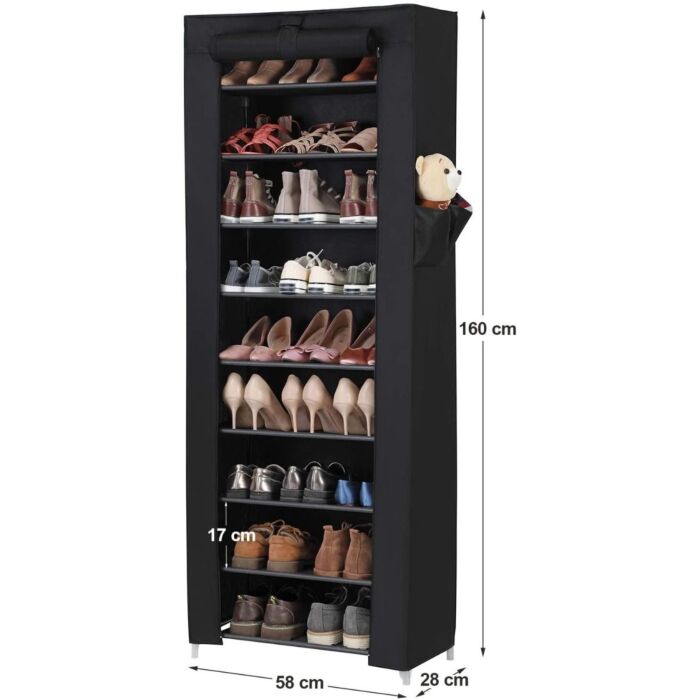 Hoppa! Songmics Schoenenrek met 10 niveaus, 160 x 58 x 28 cm, 27 paar schoenen - Zwart