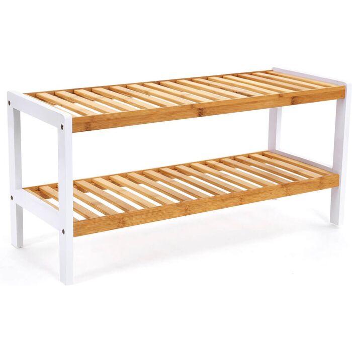 Hoppa! Songmics Bamboe Schoenenrek 2 niveau's Badkamerplank schoenenkast Bamboe schoenenrek voor 8 paar schoenen Wit-natuurlijke kleuren 70 x 33 x 25 cm
