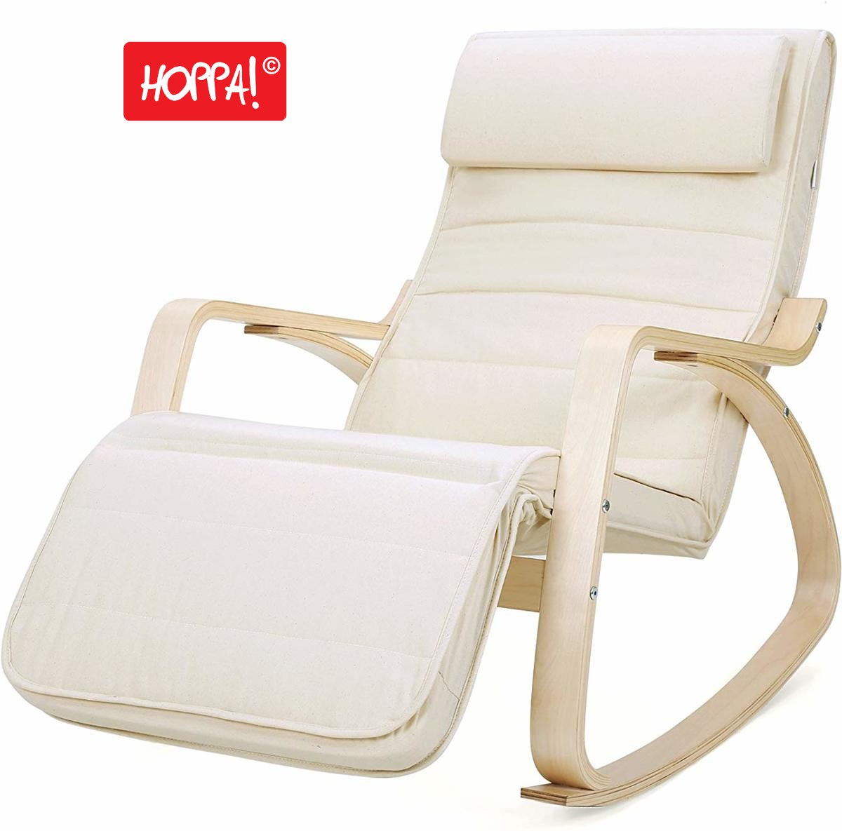 Hoppa! Songmics Schommelstoel met Verstelbare Voetensteun - Creme - Katoen