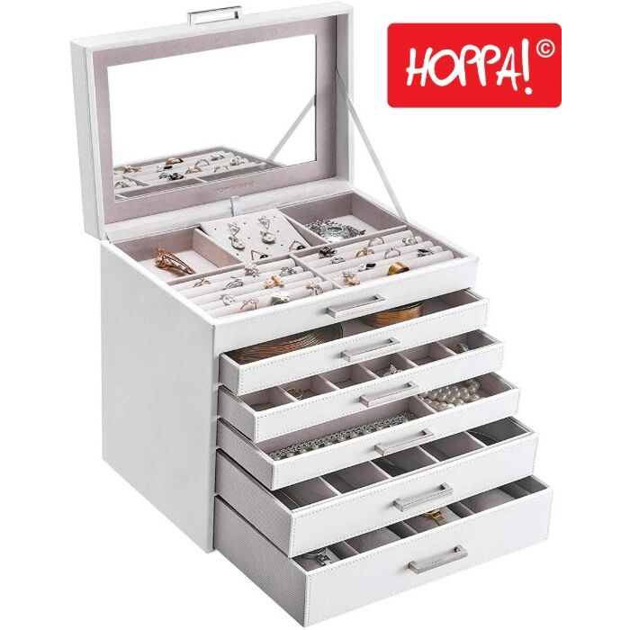 Hoppa! Songmics Sieradendoos Met 6 Niveaus - Wit - Kunststof