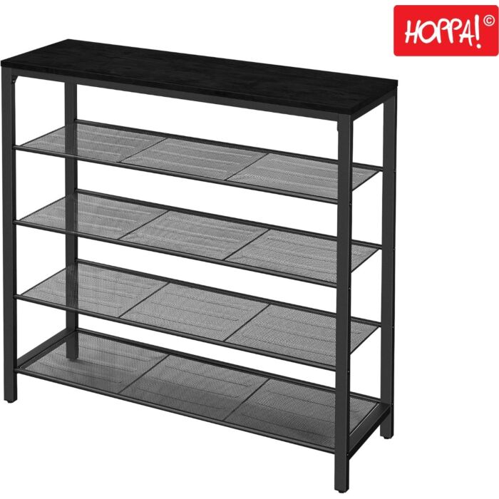 STRONG DESIGN: 4 open rekken met dichtgemaasd stalen gaas bieden veel ruimte voor uw schoenen. Het in het oog springende vintage oppervlak verwelkomt tassen, sleutels, fotolijstjes of een mooi boeket rozen (schapoppervlak tot 10 kg, schoenendragers kunnen tot 5 kg per stuk dragen).