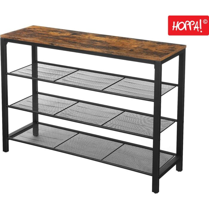 Hoppa! Songmics Vintage Metalen Schoenenrek - Bruin/Zwart - Metaal - 90 x 31 x 73 cm (BxDxH)